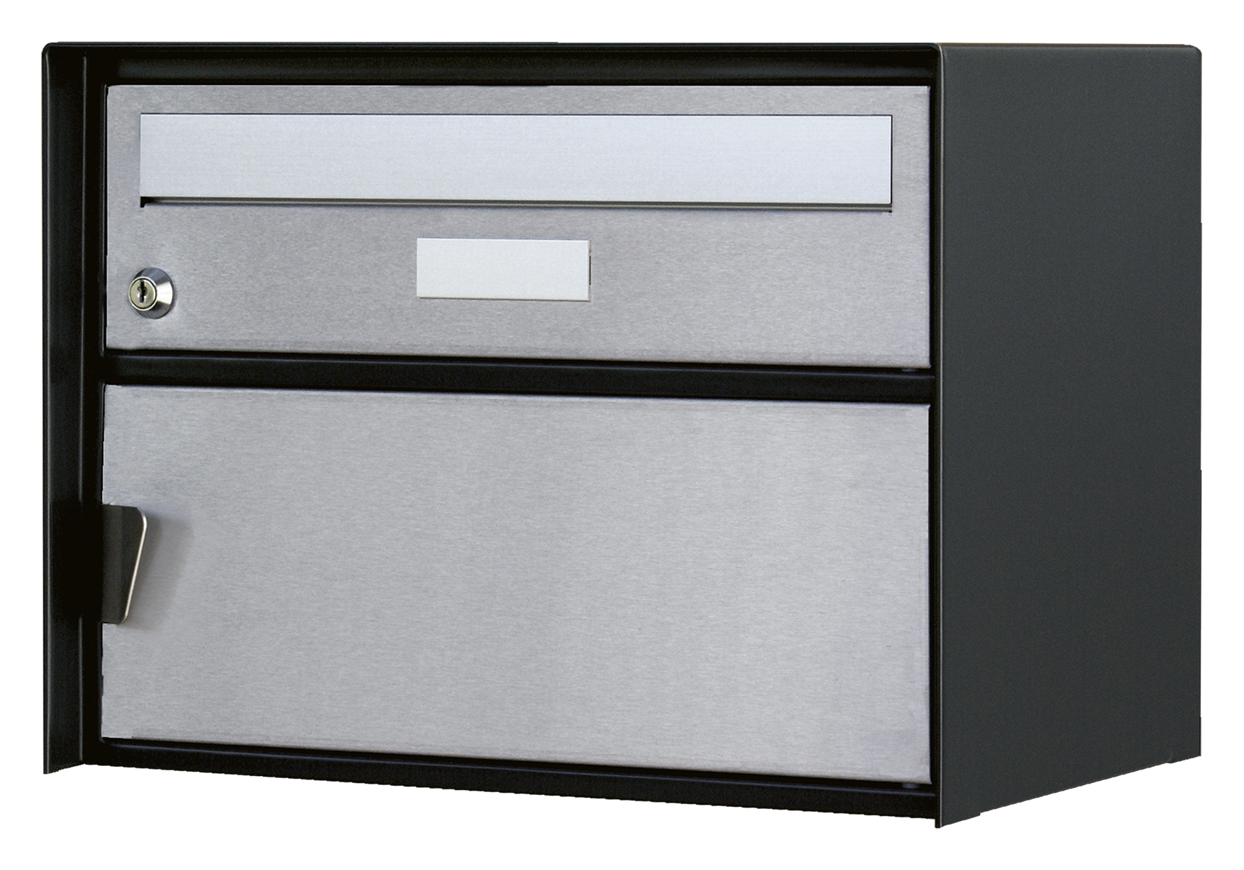 Stahl sendzimirverzinkt, Türen aus Chromstahl, Gehäuse pulverbeschichtet, einfache Montage mit Monostütze, Seitenstützen oder Wandmontage mit Wandkonsole, Lieferumfang: Schloss inkl. 2 Schlüssel, auswechselbares Alu-Namensschild, ohne Stütze, zusätzlich erhältlich: "Bitte keine Werbung" Schild, auf Anfrage: erhältlich mit KABA/KESO/SEA-Ausschnitt, Postnorm.