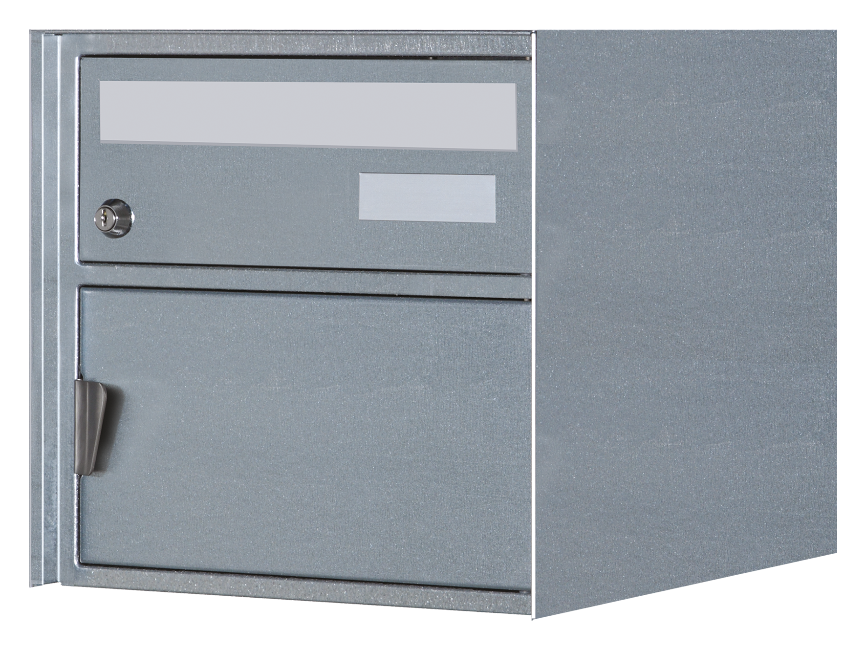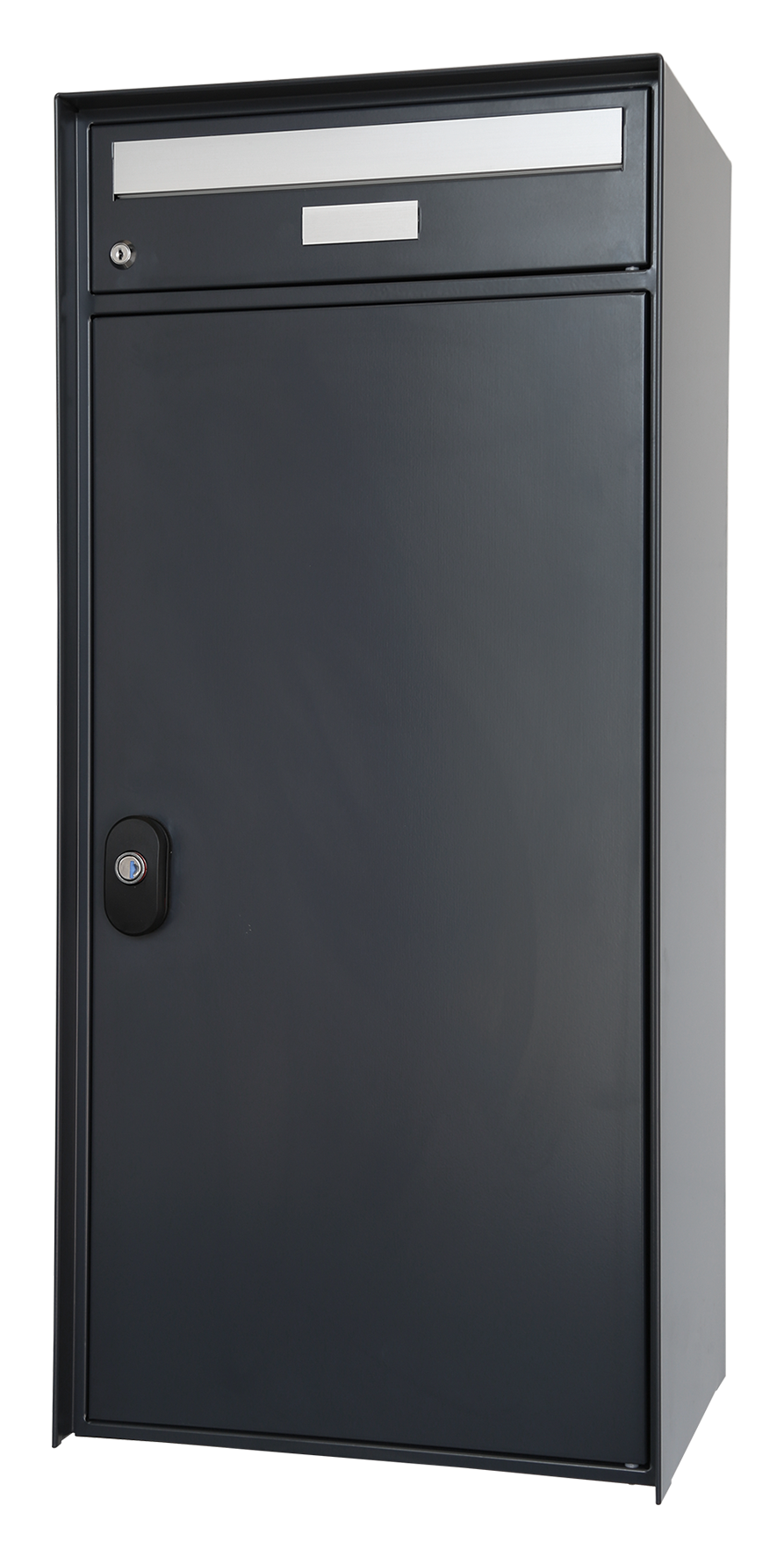 Stahl sendzimirverzinkt, pulverbeschichtet, Briefeinwurfklappe farblos eloxiert, abschliessbares 50 l Packetfach (inkl. 2 Schlüssel), Montage mit Seitenstützen oder Wandmontage, Lieferumfang: Schloss inkl. 2 Schlüssel, auswechselbares Alu-Namenschild, ohne Stützen, zusätzlich erhältlich: "Bitte keine Werbung"-Schild, auf Anfrage: erhältlich mit KABA/KESO/SEA-Ausschnitt, Postnorm, Drehspannverschluss mit Drucktastschloss (inkl. 2 Schlüssel), durch Drücken auf das Schloss kann die Paketfachtüre vom Boten verriegelt werden, geöffnet wird das Schloss mit dem Schlüssel des Empfängers.
