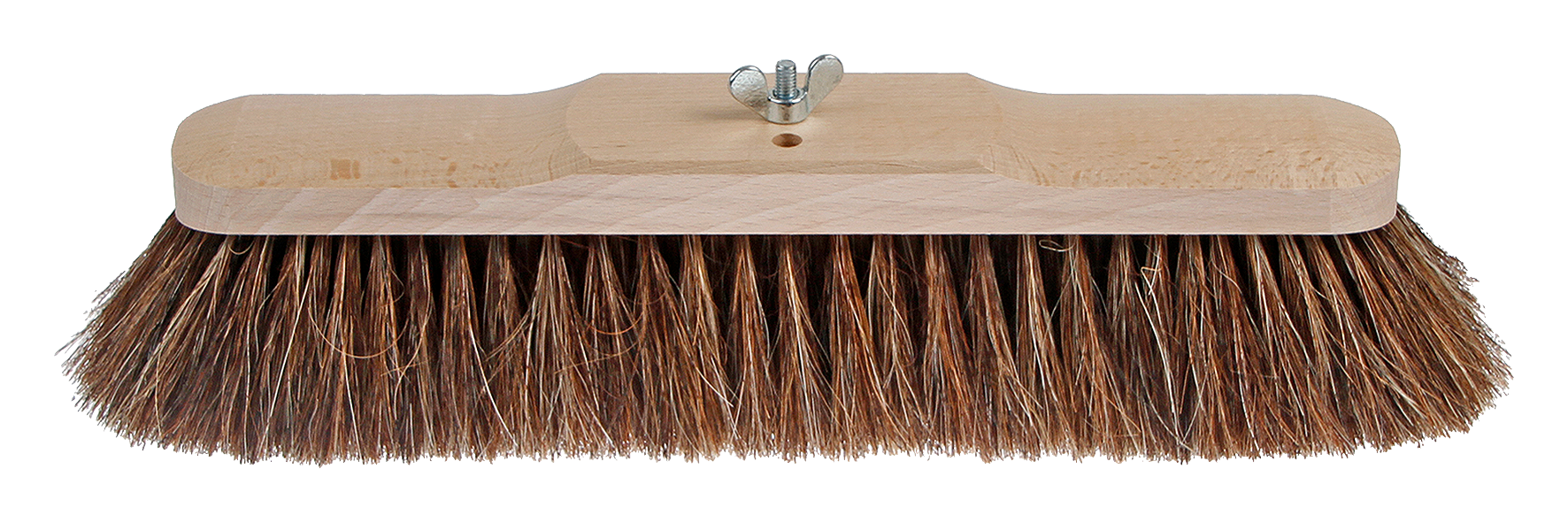Der Besatz ist eine Mischung aus Pferdehaaren und Kunststofffasern und eine Alternative zu reinem Pferdehaar. Er eignet sich für alle glatten Bodenbeläge im Innenbereich, allerdings nur für die Trockenreinigung. Sollte der Besatz irgendwann abgenutzt sein, lässt sich der Besen dank der Flügelmutter einfach ersetzen.