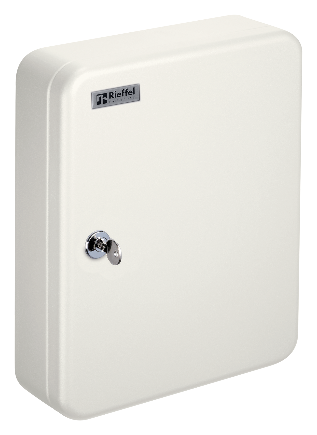 Stahlgehäuse mit eingeschweissten Metallhaken, Zylinderschloss mit 2 Schlüsseln, pulverbeschichtete Lackierung, Hakennummerierung, Register und Schlüsseletiketten lose beigelegt, inkl. Befestigungsmaterial
