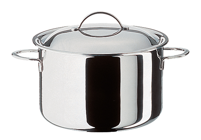 wärmeleitfähiges und hochwertiges 5-Lagen-Mehrschichtenmaterial, hochglanzpolierter Edelstahl, passgenaue Topfdeckel, geschlossener Topfrand mit Schüttrand, ergonomische Stiele und Griffe, Stiele sind aus Edelstahl und dauerhaft mit dem Topfkörper verschweisst, für alle Herdarten geeignet, mit Innenskalierung zum einfachen Dosieren, mit Deckel