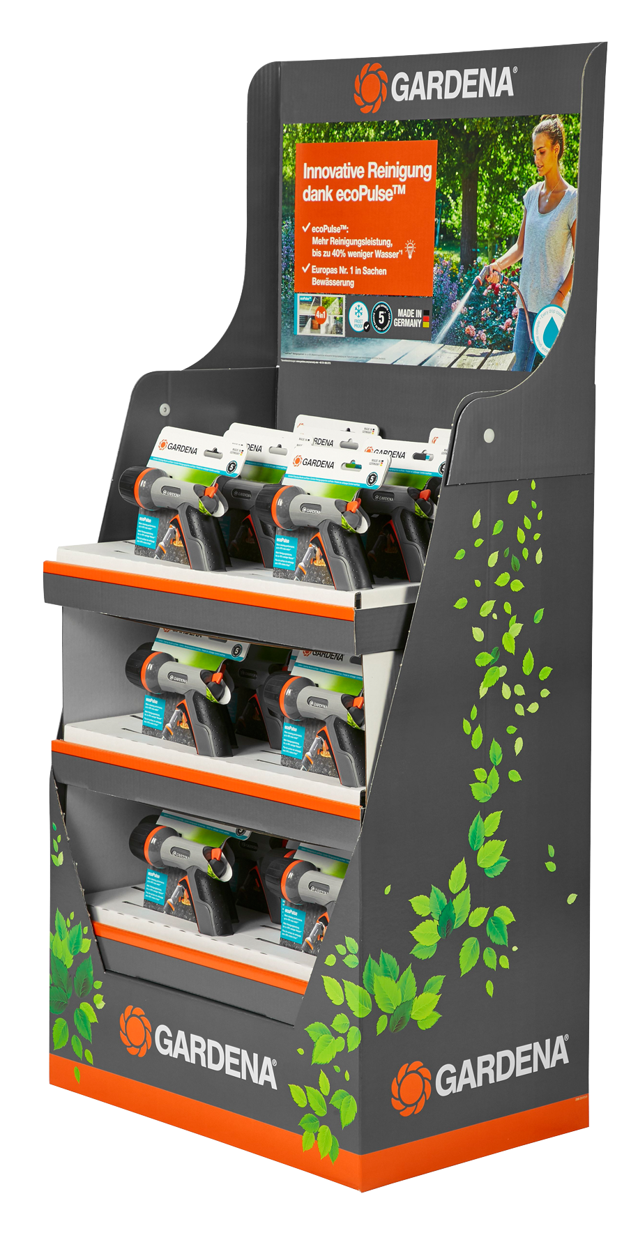 Die GARDENA Comfort Multi-Reinigungsspritze ist ideal für die leistungsstarke und wassersparende Reinigung und Bewässerung. Die Profispritze verfügt über vier verschiedene Sprühformen, die sie in beliebigen Anwendungsbereichen einsetzbar machen. Der oszillierende Wasserstrahl eignet sich optimal für die kraftvolle Flächenreinigung und spart dabei dank der innovativen Pulse-Technologie bis zu 40 % Wasser. Darüber hinaus verfügt die Spritze über einen kräftigen Stechstrahl, einen Flachstrahl sowie einen Sprühstrahl für die sanfte Pflanzenbewässerung, deren Stufen variabel einstellbar sind. Mit einer einfachen Drehung an der Spritzpistole kann der Wasserdurchlauf je nach Bedarf stufenlos dosiert oder ganz abgestellt werden, um die Reinigung oder Bewässerung wassersparend zu verrichten. Bei Bedarf kann der Impulsauslöser für einen konstanten Wasserstrahl arretiert werden. Dank des Frostschutzes kann die Sprühpistole auch eisigen Temperaturen standhalten, und der UV-Schutz verhindert Beschädigungen an heissen Sommertagen. Die Wasserspritze ist mit allen GARDENA Systemteilen kompatibel und kann einfach an den Wasserschlauch angeschlossen werden. Der ergonomische Griff mit Weichkunststoffelementen sorgt für bequeme Handhabung und verhindert das Abrutschen, während die Auslösetaste mit Dauerarretierung eine ermüdungsfreie Nutzung ermöglicht.