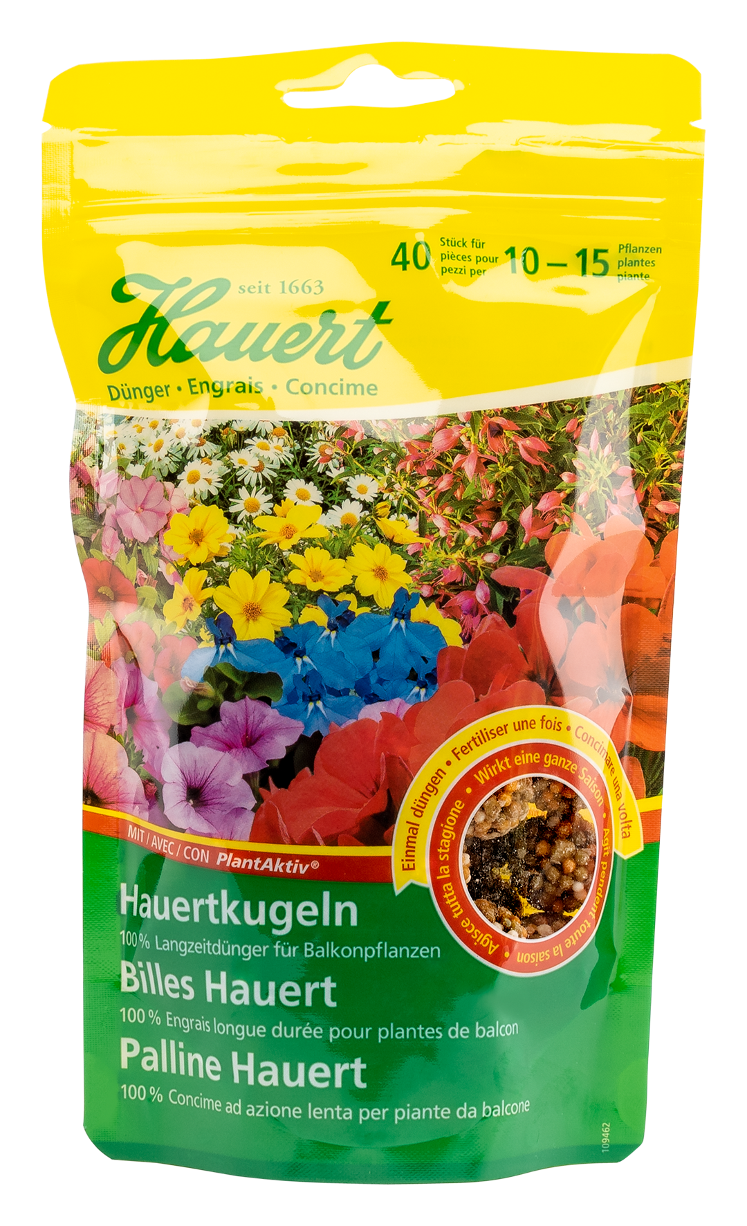 Hauptnährstoffe, ergänzt mit Spurenelementen, lässt die Balkonpflanzen mit einer Düngergabe eine ganze Saison gedeihen
