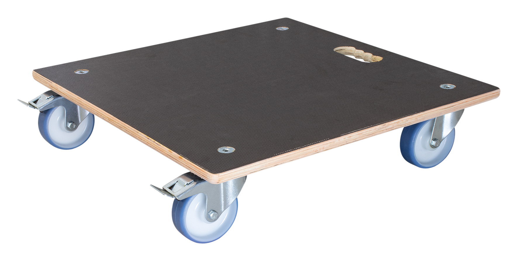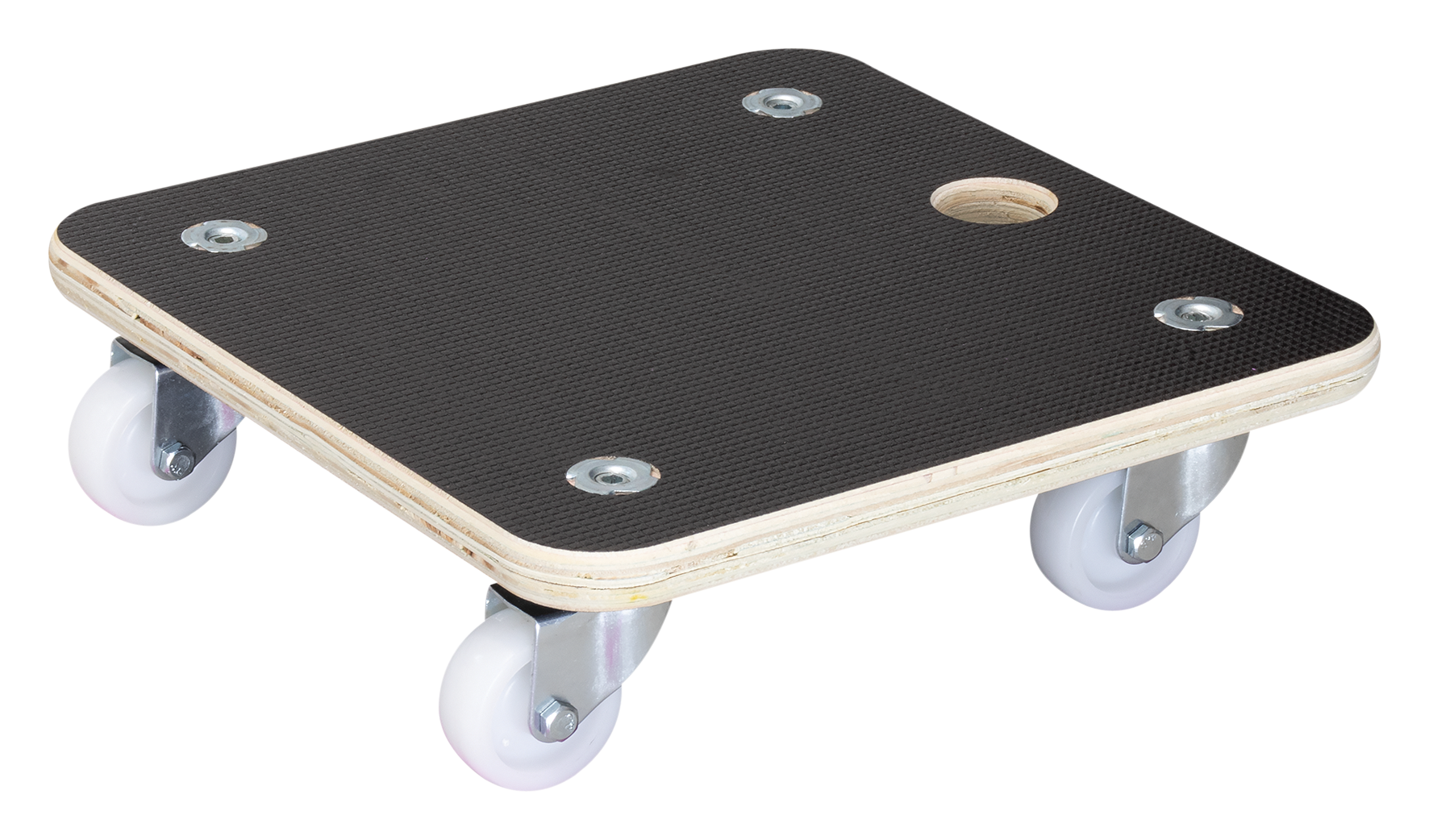 Tragfläche aus Birkenholz mit rutschfester MaxiGRIP-Spezialbeschichtung, Tragflächengrösse 290x290 mm, Tragkraft 200 kg, 4 hochbelastbare Transportgeräterollen für weiche/robuste Boden-Oberflächen