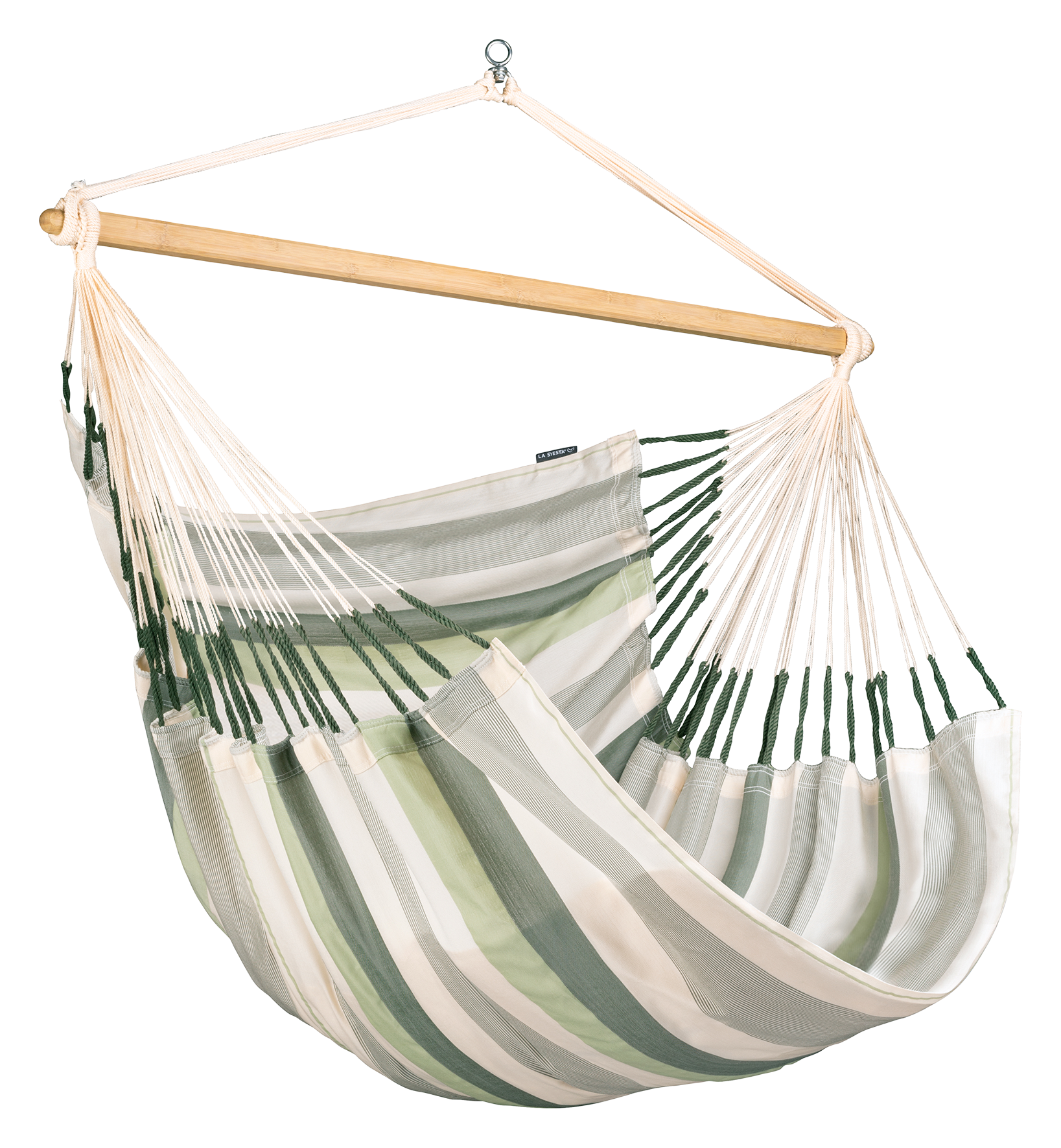 Dieses Produkt verfügt über einen Stab aus Bambus und einen integrierten 360° Drehwirbel. Die reissfeste Webkante sorgt für zusätzliche Stabilität. Die benötigte Mindesthöhe zur Befestigung beträgt 200 - 220 cm. LA SIESTA-Produkte sind weltweit geschätzt, nicht nur wegen ihrer farbenfrohen Schönheit, sondern auch aufgrund ihrer hochwertigen Verarbeitung, ihres einmaligen Komforts und ihrer hohen Haltbarkeit. Als Familienunternehmen setzt LA SIESTA auf Nachhaltigkeit. Das Leitbild ist geprägt von Fairness und einem nachhaltigen Umgang mit Mensch und Natur. Das Produkt wird ohne Befestigungsmaterial geliefert.