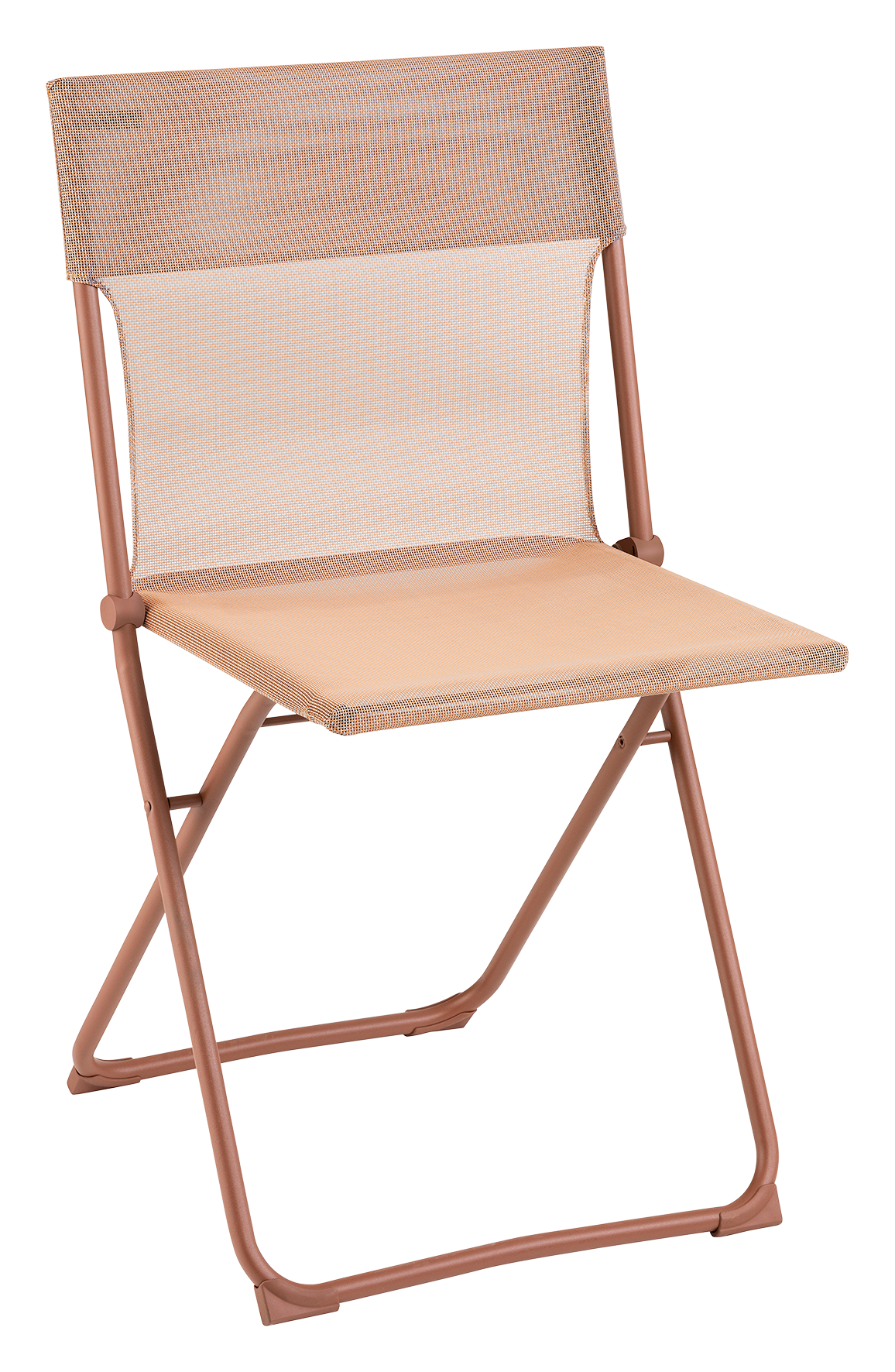 kompakter Stuhl, Rohrstruktur Ø 18 mm aus THLE-Stahl (Haute Limite Elastique), Sicherheitsklappmechanik durch einen Gleitring aus Kunststoffspritzguss (Polyacetal), Batyline® Gewebe ermöglicht die Herstellung von Artikeln speziell rund um Schwimmbäder, mit hervorragender Widerstandsfähigkeit gegen UV-Strahlung, fungizider Imprägnierung und luftigem Gewebe, damit das Wasser ablaufen kann, Batyline® Gewebe ist besonders reissfest, verformt sich nicht und ist leicht zu reinigen, auch hier wird Umweltschutz betrieben, Qualitätslabel Oeko-Tex® (zuverlässige Textilkontrollen auf ungiftige Substanzen)