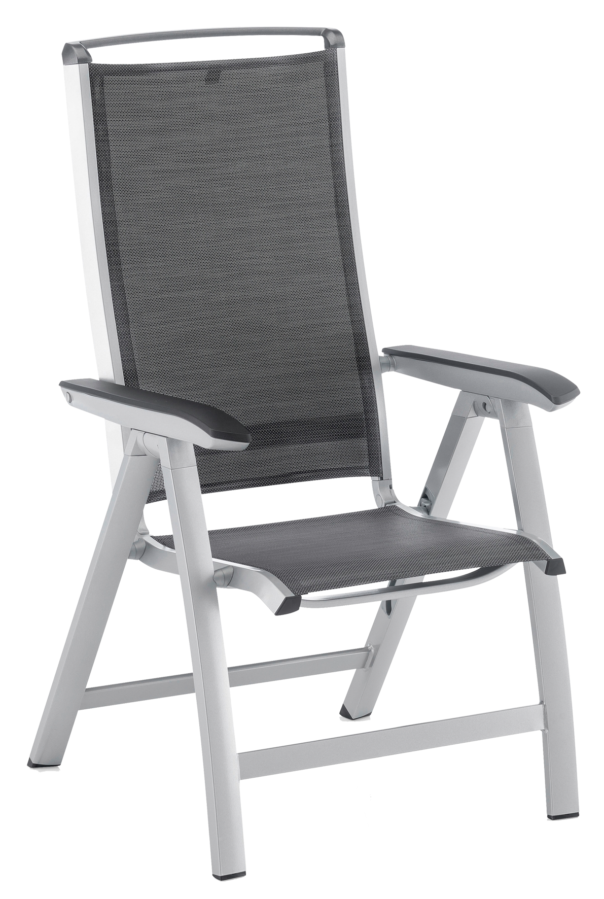 Rohrstruktur aus Aluminiumlegierung Ø 22 mm, ergonomische hohe Rückenlehne mit Lendenwirbelstützen, Rückenlehne in 5 Positionen verstellbar über die Armlehnen, Monoblock-Armlehnen aus Harz in ergonomischer Form, Vorderkante der Sitzfläche gewölbt für besseren Sitzkomfort, Gewebe mit verstärkten Nähten, der dreilagige AirComfort® Bezug ist das Ergebnis einer intensive Studie in unseren Versuchswerkstätten zu Liegekomfort und neuesten Indoor/Outdoor Möbel Trends, Atmungsaktive und wasserdurchlässige Materialien, keine Flüssigkeitsaufnahme, bietet Luftzirkulation und schnelle Trocknung., UV-Resistenz, optimaler Sitzkomfort, Stuhlgleiter für grosse Stabilität