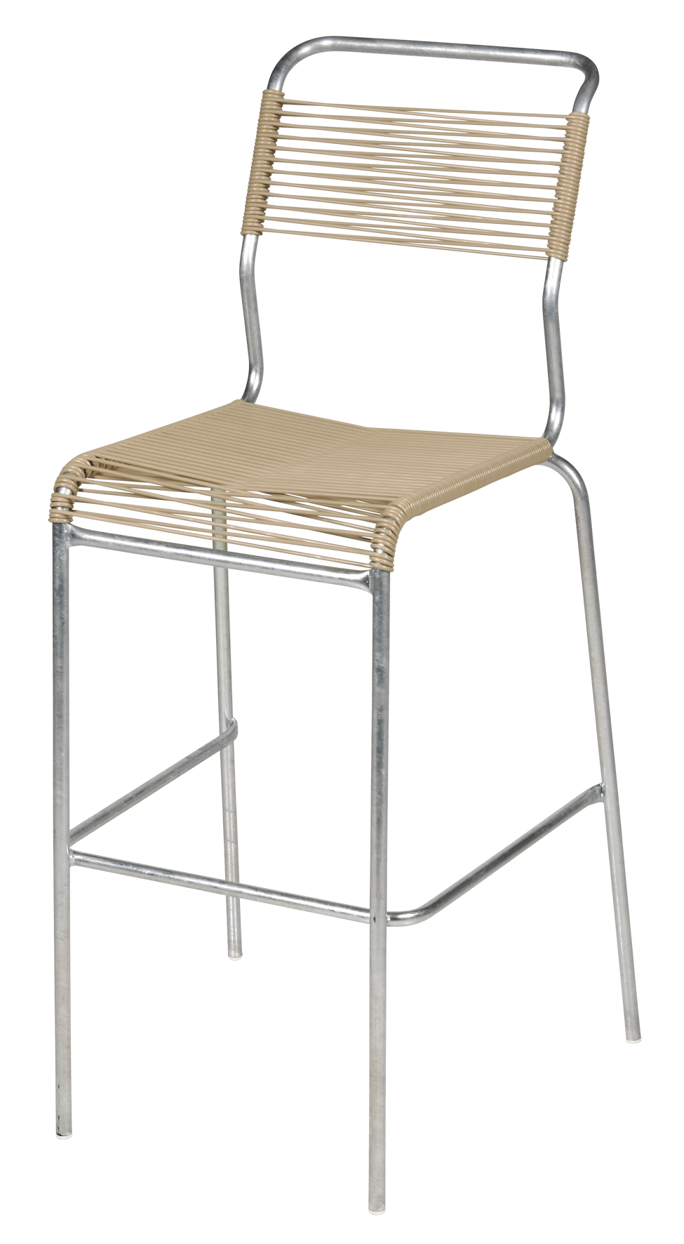 Sitzfläche Spaghettigeflecht, Gestell aus Stahlrohr mit reiner Polyesterpulver- Beschichtung, stapelbar, wetterfest und gastrotauglich, Swiss-Made