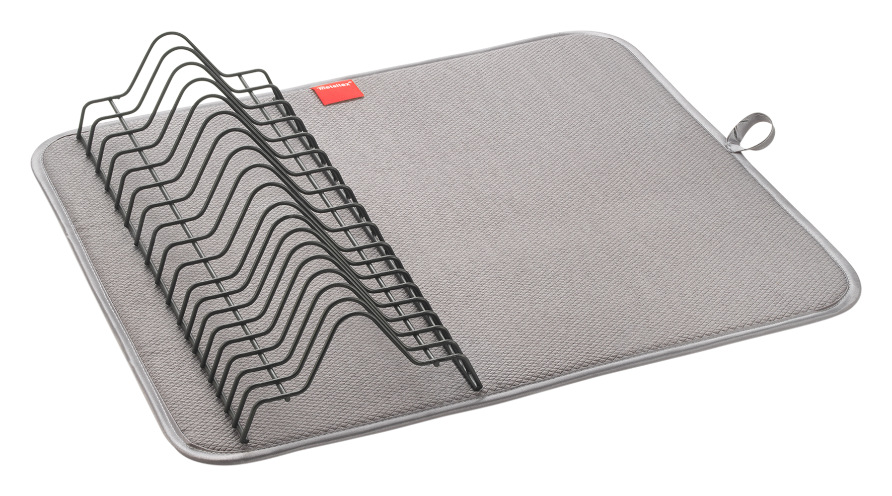Das Metaltex Abtropfgestell Drytex bietet einen Stellplatz für Teller, Tassen, Gläser oder Besteck zum Abtropfen von Wasser nach dem Spülen. Das Gestell bietet eine platzsparende Aufbewahrung und schafft zusätzlichen Trockenraum. Die Abtropfmatte saugt bis zu 2 Liter Wasser auf und lässt sich einfach nach Gebrauch auswringen.