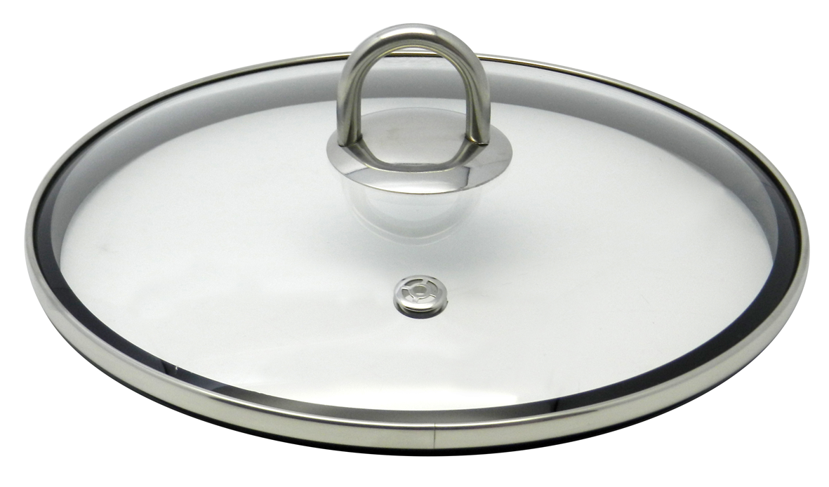 hitzebeständiges Glas, mit schwarzem Silikonrand zum dichten Abschliessen und zum Schutz des Pfannenrandes, mit Bügelknopf aus Edelstahl, spülmaschinengeeignet