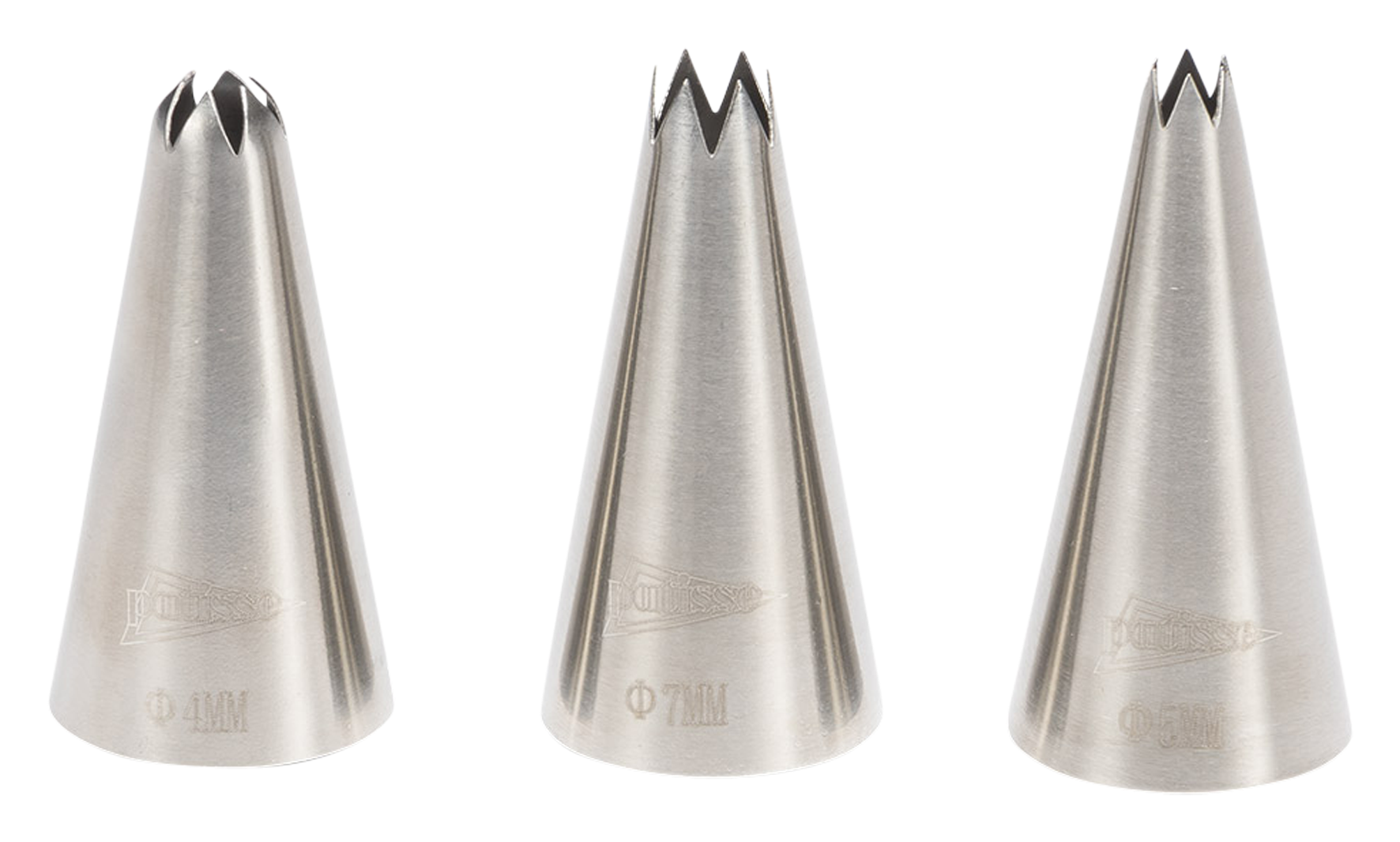 Dieses Spritztüllen-Set 3-teilig ist das perfekte Werkzeug, um Ihre Torten und Desserts zu dekorieren. Das Set enthält 3 Sterntüllen aus Edelstahl mit einem Durchmesser von 4, 5 und 7 mm.