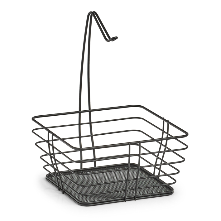 Das moderne Industrial Design in die Küche einziehen lassen. Dieser Korb aus pulverbeschichtetem Metall ist der ideale Aufbewahrungsort für frisches Obst und Gemüse. Der Gitterboden und die seitlichen Metallstäbe ermöglichen eine ständige Luftzirkulation und verhindern dadurch das Schwitzen der Lebensmittel. An dem Haken sind Bananen oder Trauben am besten aufgehoben. Die Masse des Korbes betragen 26 x 26 x 13 cm. Auch die weiteren Küchenhelfer im cleanen Industriecharme entdecken.