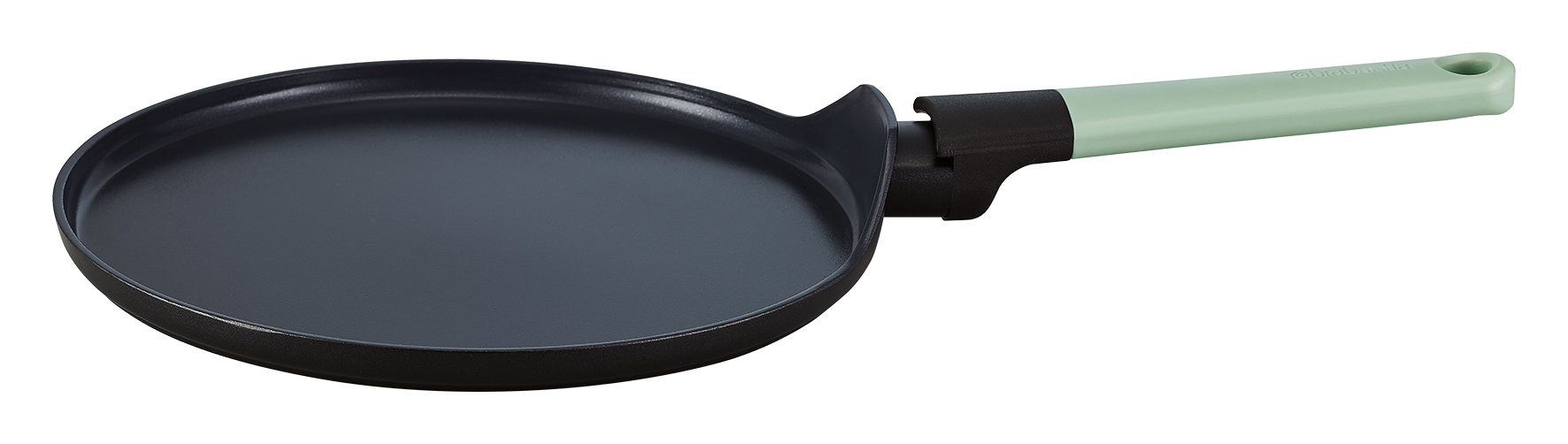 Mögen Sie Pfannkuchen und Omelettes? Testen Sie diese BRABANTIA Tasty+ Pancakepfanne aus geschmiedetem Aluminium mit farbigem Griff. Man braucht nicht viel Butter oder Öl zu verwenden, denn durch die Antihaftbeschichtung aus Keramik bleibt nichts kleben. Und es ist für die meisten Hitzequellen geeignet, einschliesslich Induktion.