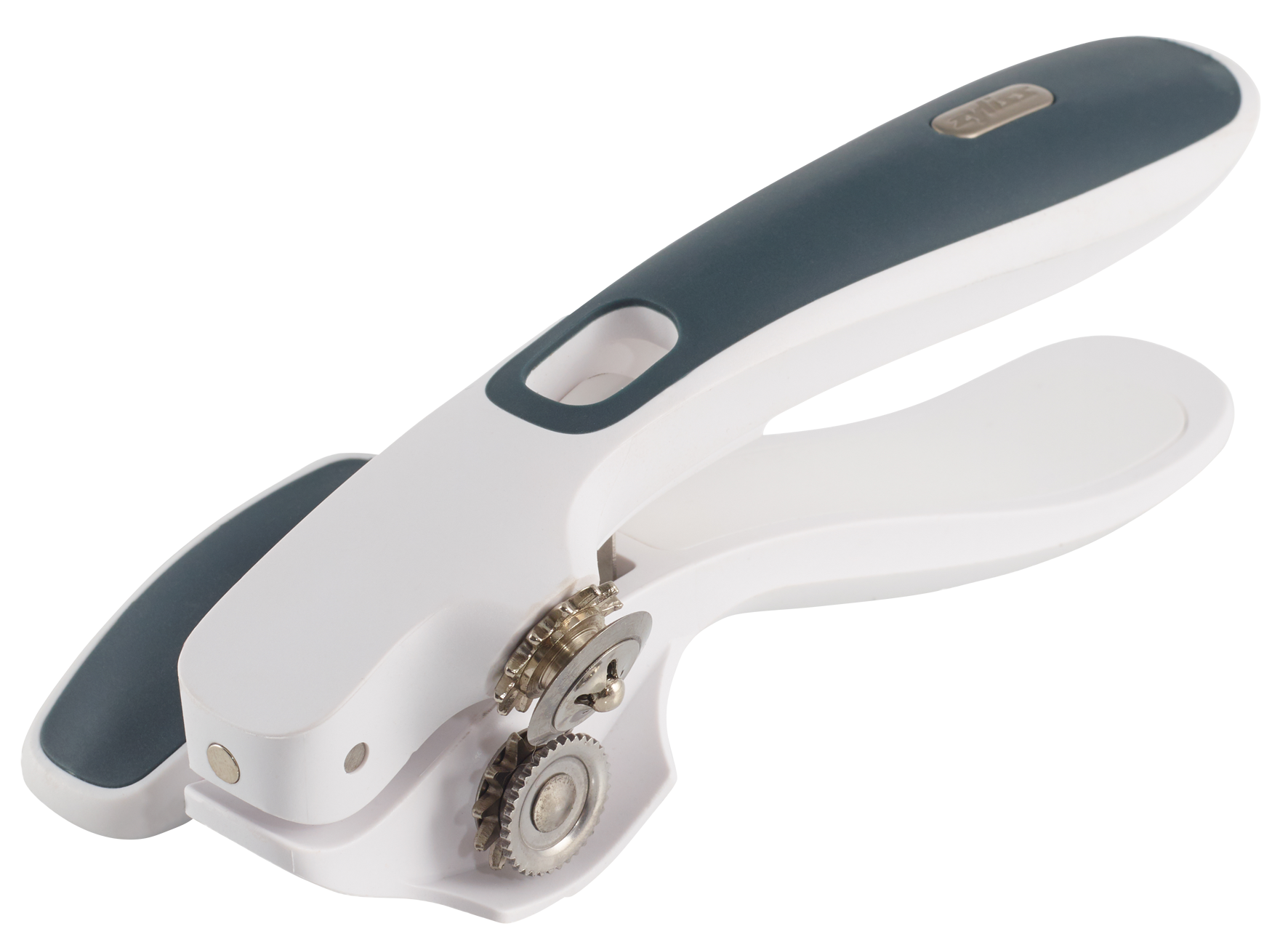 rutschfeste Griffe für sichere Handhabung, entwickelt für grosse Sicherheit in der Anwendung, öffnet Dosen sicher ohne scharfe Kanten zu schneiden, integrierte Klemmen zur sicheren Entfernung des Deckels