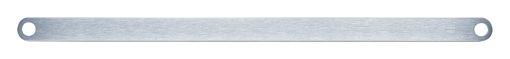 die Normleiste stellt die Basis der Offenen Küche dar, sie wird aus 3 m starkem, mattgeschliffenen Edelstahl gefertigt und ist 25 mm breit, insgesamt stehen 10 verschiedene Längen zur Auswahl, Leisten bis 55 cm haben zwei Befestigungspunkte