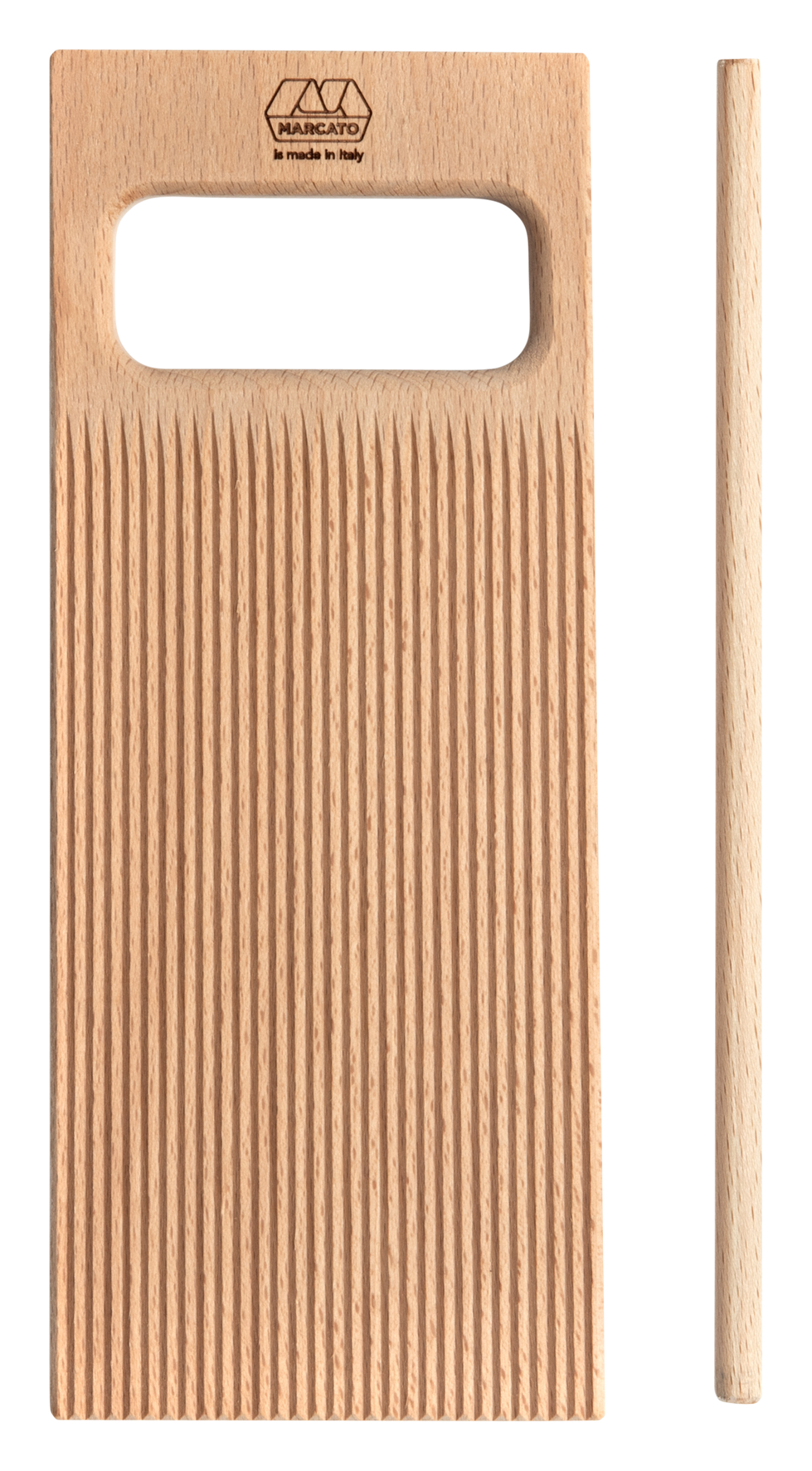 Rillenbrett für Garganelli und Gnocchi mit Rollstock ist aus Massivholz gefertigt. Dank des ergonomischen Griffs und der festen Zähne reicht ein leichter Druck aus, um jede Art von Teig zu zerkratzen. Gnocchi werden für Sie kein Rätsel mehr sein. Dank der festen Zähne reicht ein leichter Druck aus, um jede Art von Teig zu zerkratzen. Der Artikel eignet sich perfekt für die Zubereitung von Garganelli, Cavatelli und allen Arten von Gnocchi. Ob sardische Gnocchi, Cavatelli oder die klassischen Kartoffel-, Kürbis- oder Ricotta-Gnocchi, dank seiner robusten Zähne benötigen Sie nur wenige Minuten, um mehrere Gnocchi zuzubereiten.
