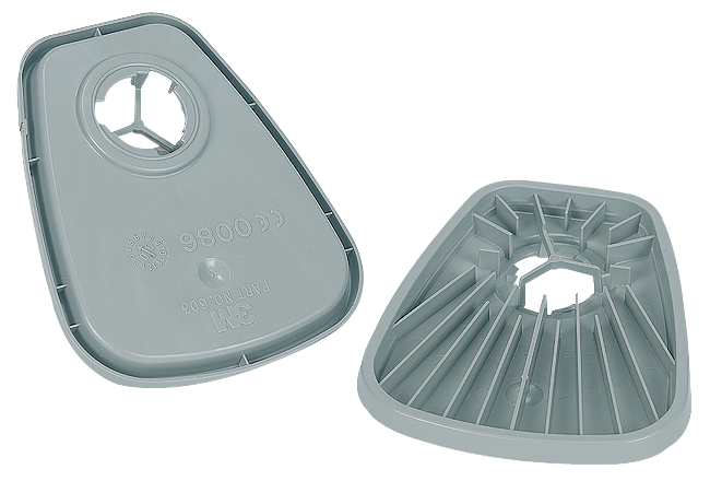 3M™ Filterhalter für Mehrweg-Atemschutzmasken ermöglichen es den Benutzern, bestehende 3M™ Filter für Gase und Dämpfe um Partikelschutz zu erweitern, um sie in einem breiteren Spektrum von Anwendungen einzusetzen. Zur Verwendung mit 3M™ Partikelfiltern der Serie 5000 ermöglichen die 3M™ Filterhalterungen für Mehrweg-Atemschutzmasken den Anwendern eine einfache Kombination ihres Schutzes für den Einsatz bei einer Vielzahl von Gas-, Dampf- und Partikelgefahren oder einer Kombination aus diesen.