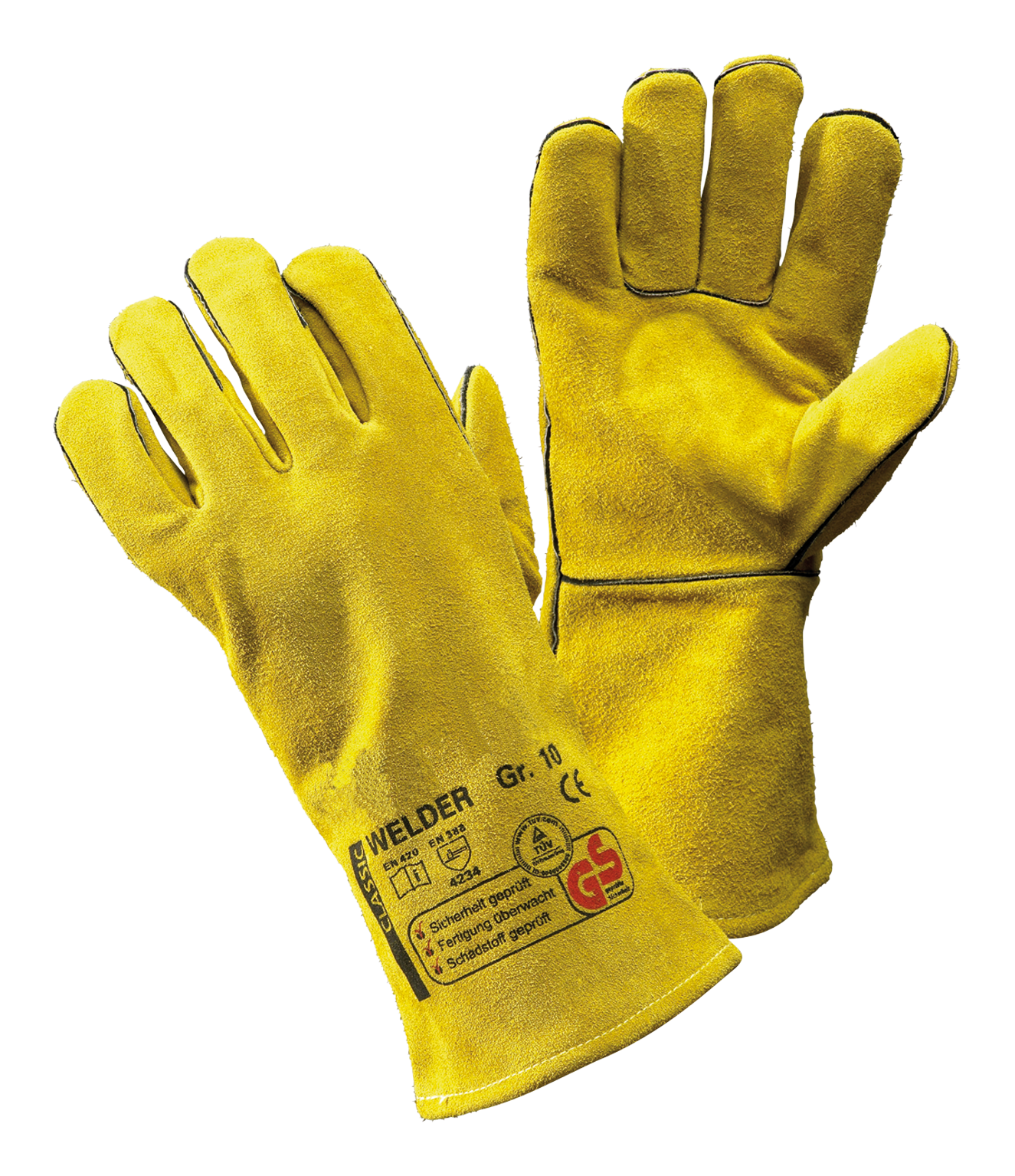 der gefütterte Schweisserhandschuh, Qualitäts-Rindsspaltleder, hitzebeständig, Schweissperlen bleiben nicht haften, schadstoffgeprüft, komplett weich gefüttert, guter Tragekomfort, sehr gute Standzeiten, lange Stulpe schützt vor Schweissperlen, hitzebeständig, gute Griffeigenschaften, kräftiges Leder, gutes Wärmeverhalten, hohe Weiterreissfestigkeit, sehr hohe Durchstichfestigkeit, atmungsaktives Leder, hitzebeständig bis +250°C, Schutz nach Kategorie 2, EN 420, EN 388, EN 12477A