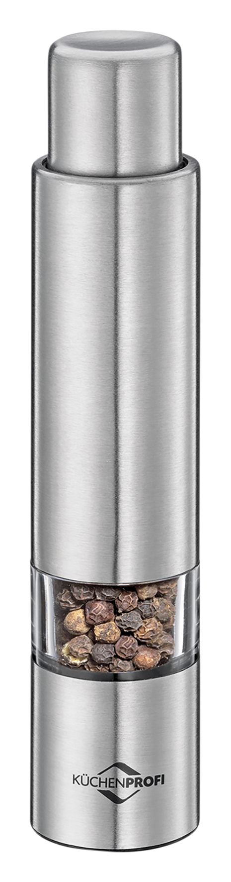 Mit Edelstahlreibe. Auch für Salz geeignet.