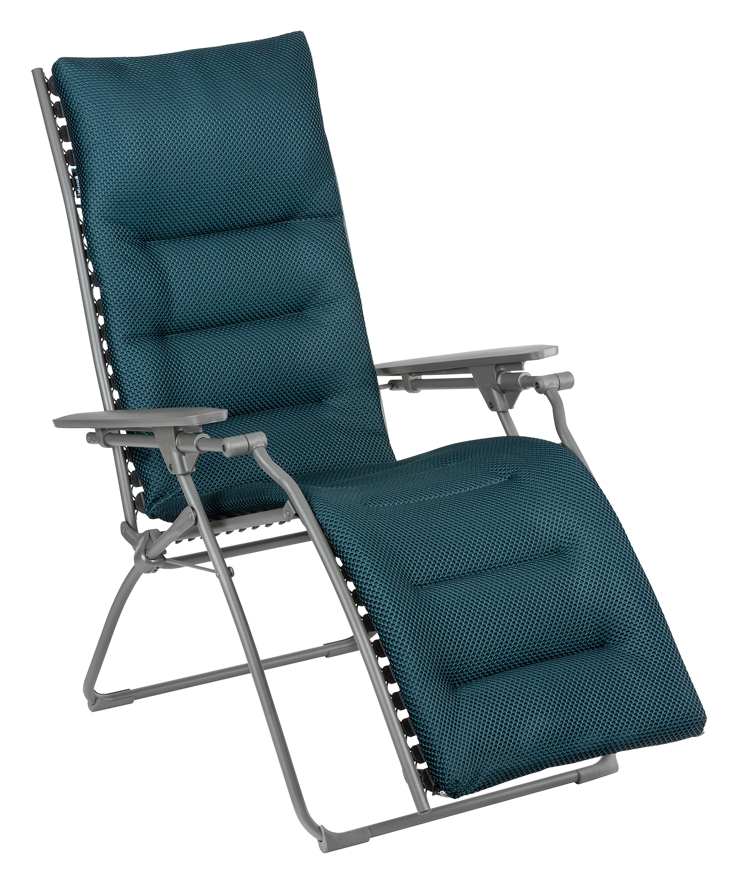 Mit dem LAFUMA EVOLUTION BeComfort in gepolsterter Ausführung können Sie den weichen Komfort eines Relaxsessels geniessen, der sowohl für den Innen- als auch für den Aussenbereich geeignet ist. Dieses Modell bietet ultimative Entspannung, denn es wurde entwickelt, um die ideale Entspannungsposition in Form eines Klappsessels zu bieten. Das wichtigste Prinzip ist die Positionierung der Beine leicht über Herzhöhe, wodurch Ihre Erholung optimiert wird. Unverzichtbar für die Entspannung auf der Veranda, im Garten oder ganz einfach im Haus. Das Gestell ist aus einem Ø 20 mm Stahlrohr mit einer Polyesterlackierung in der Farbe Titane. Die Liegefläche besteht aus einer dreilagigen Polsterung welche sich BeComfort nennt und ist atmungsaktiv, abnehmbar uns austauschbar wenn der Bezug im Laufe der Jahre ersetzt werden muss. Die Befestigung der Liegefläche besteht aus elastischen Clips, welche einen optimalen Liegecomfort gewährleisten. Die Armlehnen sind aus Kunstharz Farbe Anthrazit.