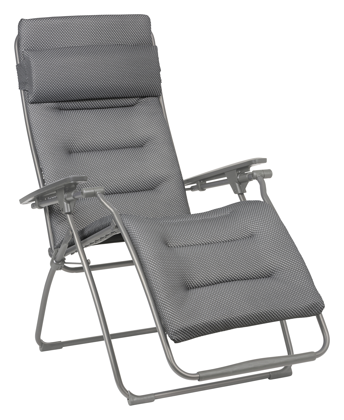 Mit dem FUTURA in gepolsterter Ausführung können Sie den weichen Komfort eines Relaxsessels geniessen, der sowohl für den Innen- als auch den Aussenbereich geeignet ist. Dieses Modell bietet ultimative Entspannung, denn es wurde entwickelt, um die ideale Entspannungsposition in Form eines Klappsessels zu bieten. Das wichtigste Prinzip ist die Positionierung der Beine leicht über Herzhöhe, wodurch Ihre Erholung optimiert wird. Unverzichtbar für die Entspannung auf der Veranda, im Garten oder ganz einfach im Haus. Das Gestell ist aus einem ø 20 mm Stahlrohr mit einer Polyesterlackierung in der Farbe Titane. Die Liegefläche besteht aus einer dreilagigen Polsterung welche sich BeComfort nennt und ist atmungsaktiv, abnehmbar uns austauschbar wenn der Bezug im Laufe der Jahre ersetzt werden muss. Im Lieferumfang mit enthalten ist eine Kopfstütze welche verstell- und abnehmbar ist. Die Befestigung der Liegefläche besteht aus elastischen Clips, welche einen optimalen Liegecomfort gewährleisten. Die Armlehnen sind aus Kunstharz Farbe Anthrazit.