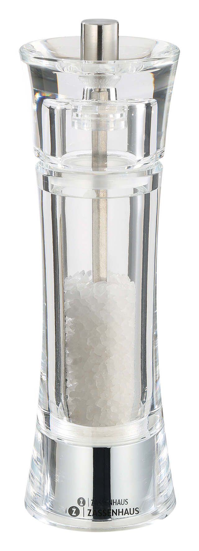 Seit 1867 stellt ZASSENHAUS als Traditionsmarke hochwertige Kaffee- und Gewürzmühlen her. Die Qualität ist gleichbleibend hoch, das Design geht mit der Zeit. Das trifft auch auf die Serie Aachen zu. Die Mühlen sind aus hochwertigem Acryl gefertigt. In allen Modellen steckt das patentierte Mahlwerk aus Hochleistungs-Keramik. Es ist härter als Stahl, Feuchtigkeit und ätherische Öle können ihm nichts anhaben. Darauf gibt ZASSENHAUS 25 Jahre Garantie. Das Mahlwerk arbeitet in zwei Stufen und zerlegt Pfeffer, Salz, getrocknete Kräuter und Gewürze sorgsam und gründlich. Die sechs Mahlstufen von pulverfein (1) bis grob (6) stellen Sie am Mühlenboden ein. Sie sind auf einer Skala jederzeit ablesbar und verschieben sich beim Befüllen der Mühlen nicht. Pflegetipp: Mahlen Sie ab und zu etwas Reis durch, so ist das Mahlwerk vor Verkleben geschützt.