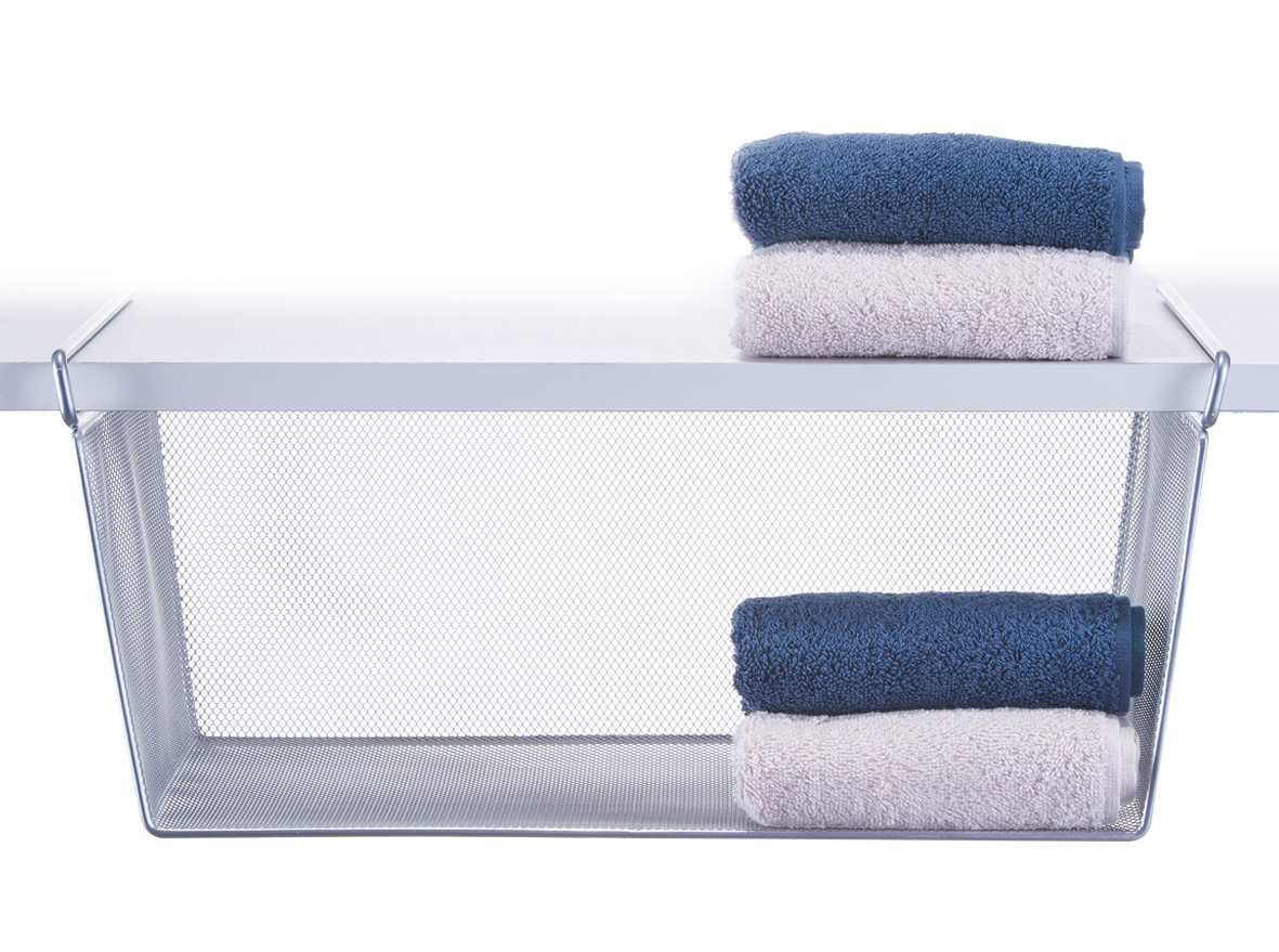 Mit diesem praktischen Unter-Fachbodenregal gewinnt man wertvollen Stauraum in Schränken. Der Ablagekorb lässt sich einfach an einem Regal- oder Schrankboden einhängen. Schneller und einfacher lässt sich zusätzlicher Stauraum nicht finden!