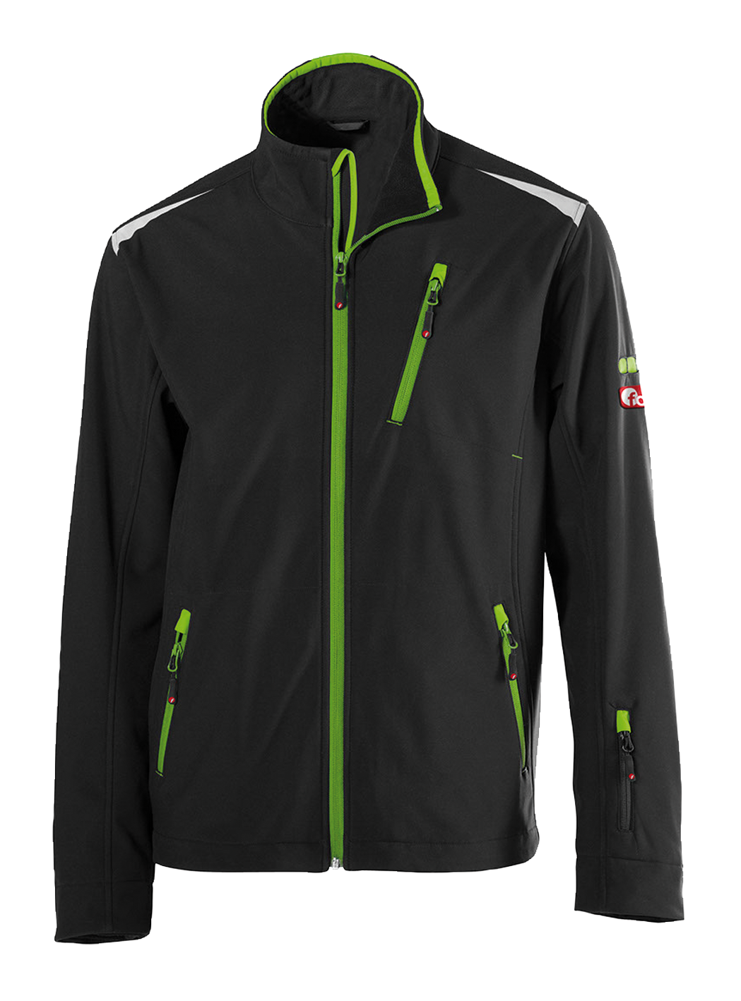 Obermaterial wasserdicht, winddicht, atmungsaktiv, innen mit Microfleece, durchgehender Reissverschluss mit Kinnschutz, viele Reissverschlusstaschen, Stiftetasche auf dem Oberarm, Innentasche mit Klettverschluss, verstellbare Saumweite, reflektierende Drucke vorne und hinten für mehr Sicherheit, bis 60°C waschbar, Material: Softshell mit innenliegender Membran, 320 g/m², Aussenmaterial: 96% Polyester und 4% Elastan Webware, Innenmaterial: 100% Polyester Microfleece