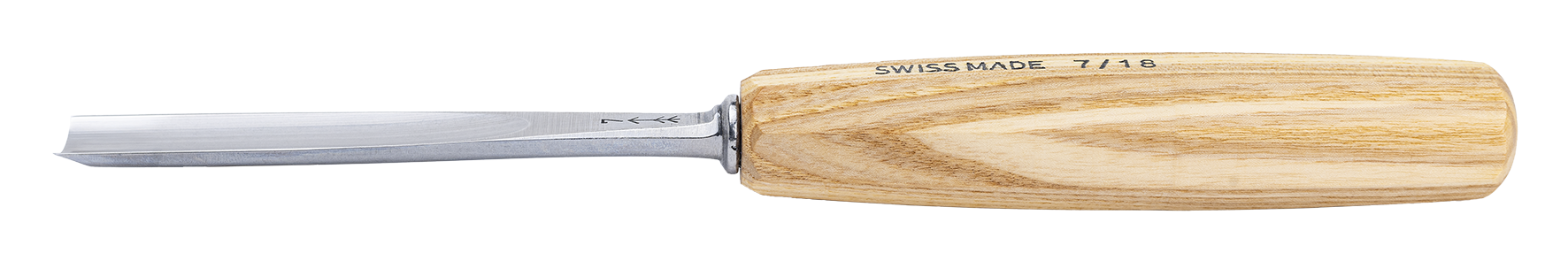 auch abgekröpftes Hohleisen genannt, zum Schnitzen starker Vertiefungen und für das Aushöhlen von Schalen geeignet, besondere Verwendung in der Ornamentik, für enge Radien und Rundungen