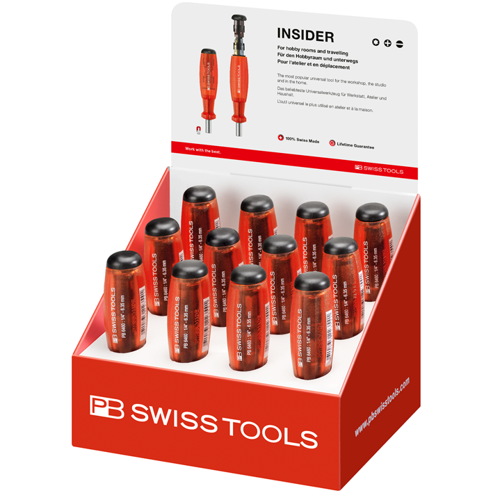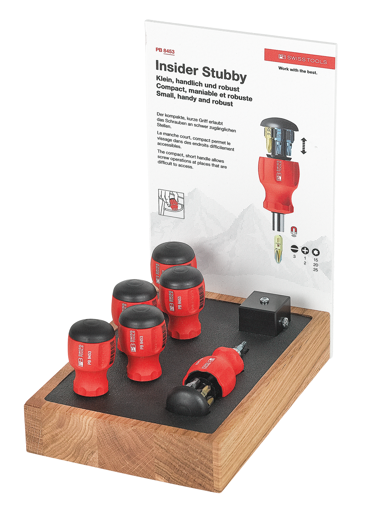 Insider Stubby mit 6 gebräuchliche PrecisionBits, für den universellen Einsatz. Der kurze SwissGrip Griff erlaubt das Schrauben an schwer zugänglichen Stellen. Auch mit Ratsche erhältlich.