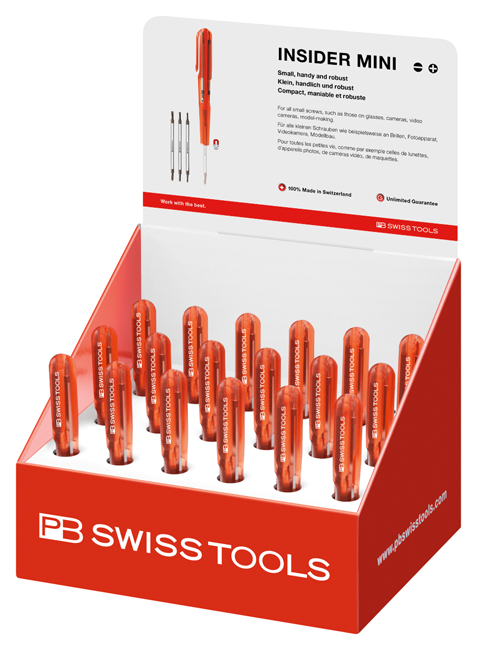 Insider Mini Sechs Schraubenzieher in einem: der stabile Griff mit praktischem Clip zum Anstecken enthält 3 Duplexklingen mit je 2 verschiedenen Schraubenzieher-Spitzen. Für Feinmechanik und Multimedia-Elektronik.