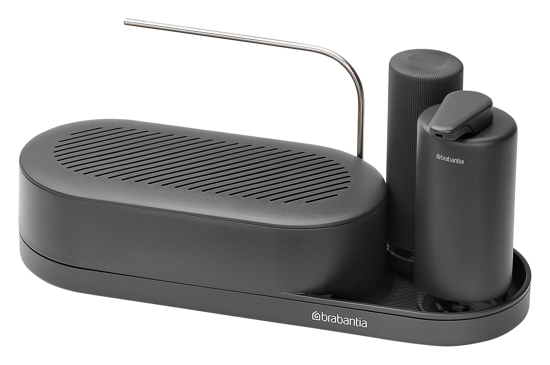 Set mit Seifenspender, Seifen-Druckspender, Organizer und Trockenablage, ideal zur Aufbewahrung und zum Trocknen. Bewahre deine Spülbürste, Lappen, Wischer und Schwämme im Behälter auf. Deckel und Abtropfschale im Inneren ermöglichen 360° Luftzirkulation. Einfaches Geschirrtrocknen – Edelstahldach ermöglicht Luftzirkulation. Multitalent – Abtropfschale kann auch ohne Edelstahldach verwendet werden. Seifenspender und Seifen-Druckspender eignen sich für die meisten Nachfüllpackungen, 200 ml. Sauber – tropffreier Spender und Druckspender Einfaches Trocknen – raffinierte Stange zum Aufhängen des Geschirrtuchs. Trockene Arbeitsplatte – Abtropfschale fängt Wasserrückstände auf. Struktur zum Anfassen – Gehäuse und Ablage aus Metall mit strukturierter Mineralbeschichtung. Einfache Reinigung – Abtropfschale, Organizer, Seifenspender, Seifen-Druckspender und Ablage lassen sich auseinandernehmen. Kein Verrutschen, kein Verkratzen – rutschfeste Standfläche. Nachhaltigere Wahl – nach Gebrauch zu 93 % recycelbar.