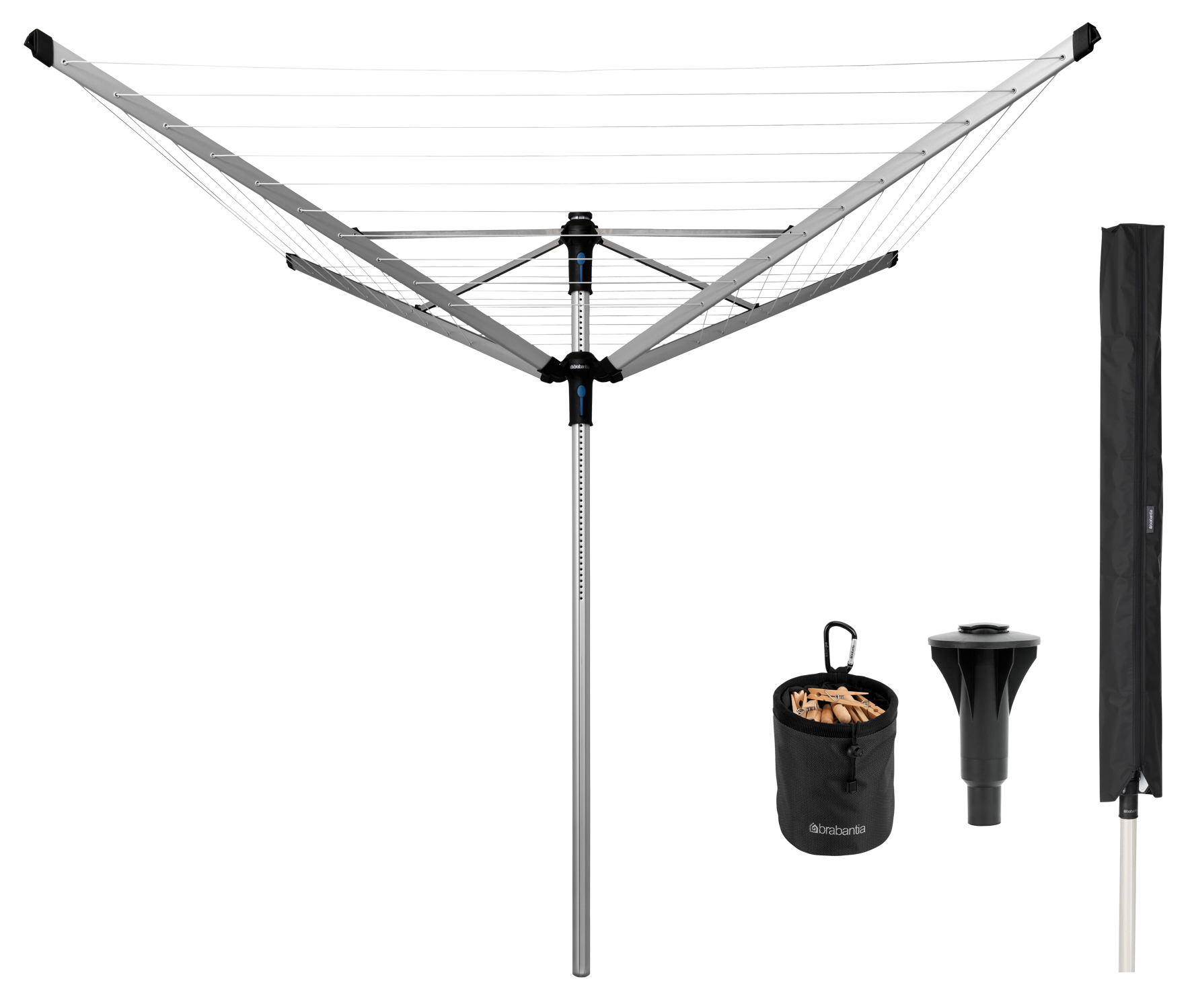 verstellbar, einhändig auf die ideale Arbeitshöhe einstellbar (von 149 bis 197 cm), die Trocknerarme drehen sich mühelos, selbst bei voller Ladung mit Nasswäsche, kann bis zu vier Maschinenladungen Wäsche halten, 50 m/164 ft Platz zum Aufhängen, standfest, ø 50 mm ebenerdiges Kunststoffrohr mit Kappe zur stabilen Verankerung in Beton inklusive, ebenfalls im Lieferumfang enthalten sind eine Schutzhülle und Wäscheklammerbeutel, ideal zum Lüften von Kissen und Bettzeug in der untersten Position, UV-beständige Wäscheleine mit rutschfestem Profil, kein Durchhängen, 3-fach nachspannfähige Wäscheleinen, immer straff gespannt, auch für Kleiderbügel - alle Arme sind mit speziellen Löchern versehen, ausserdem gut zum Planeten - Energiesparen und zugleich WeForest durch das Pflanzen von mehr Bäumen unterstützen